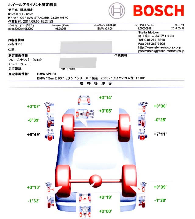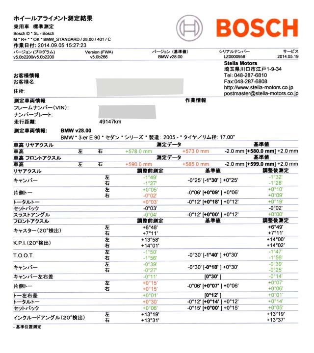 アライメント測定・調整後は、データをプリントアウトしてお客様にお渡し致します。