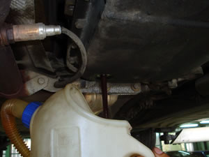 フラッシング作業が終わると、一度ATFを排出します。 排出したATFの状態を見て、2~3回フラッシングを繰り返します。