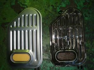 左側が新品で、右側が旧品です。 右側の旧品は、汚れたATFを吸い込んでいるのがわかるでしょう。