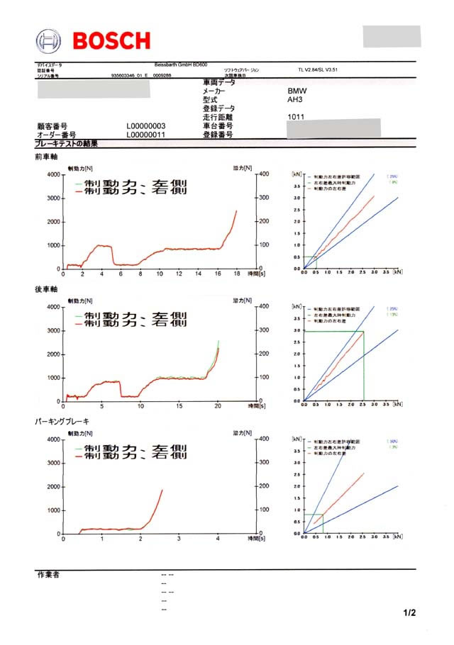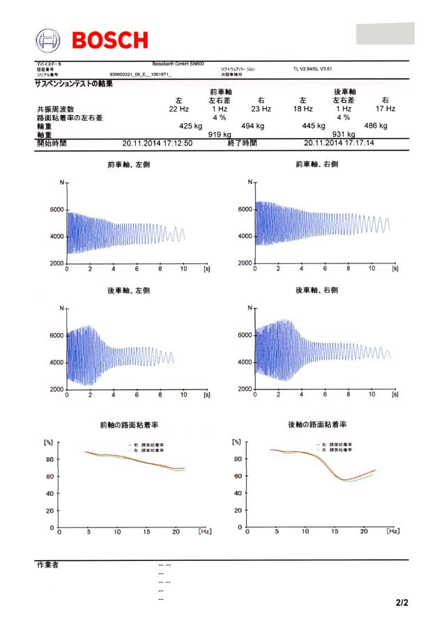 前後左右のブレーキの効きバランスがわかりますので、適切なブレーキメンテナンスが可能です。